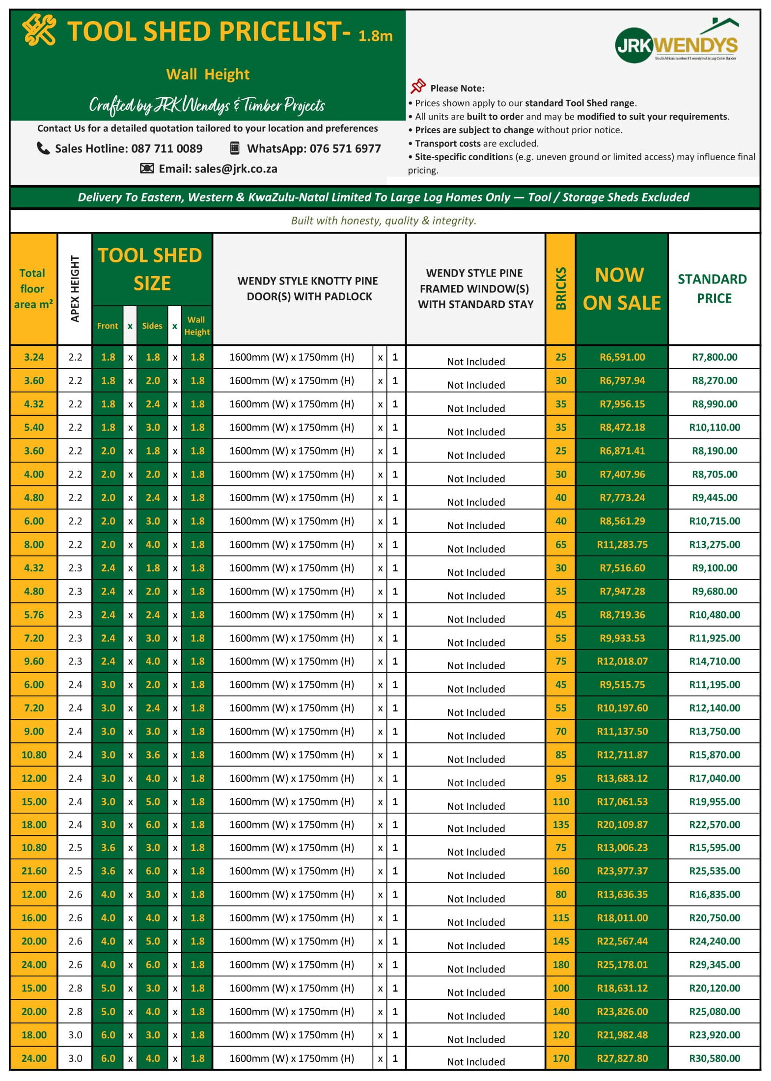 Need a reliable, well-built wooden tool shed in South Africa? At JRK Wendys, we offer sturdy, low-maintenance timber tool sheds perfect for storing equipment, gardening tools, or workshop supplies โ all customisable to your space and security needs.